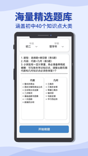 《初中数学宝典》,本APP的题库覆盖初中各年级数学所有知识点。每道题分年级,分知识点,分难度。