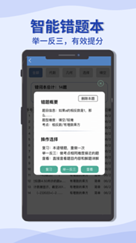 学生在错题本模块,可复习过往错题,并通过错题重做和举一反三模块,巩固学习加深理解