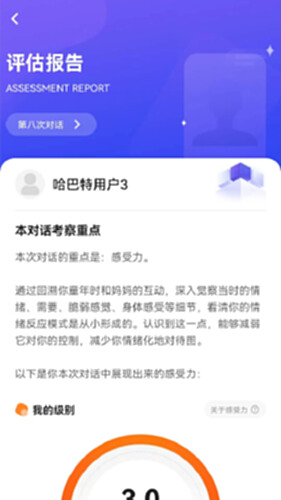 「哈巴一下」有6大系统化的集成工具,比如咨询式对话、哈巴百科、事件书写单、哈巴冥想、场景实践、评估报告等,来帮助你提升自己三个维度的能力。