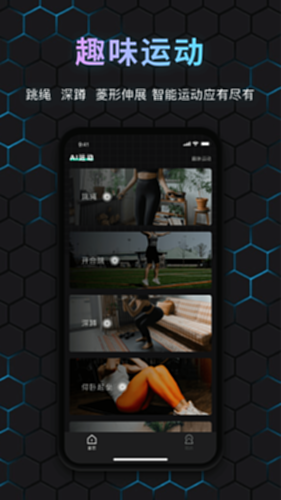 健康监测功能会根据您的身高、体重等信息智能计算BMI、体脂率等健康数据,为您生成详尽的健康报告,让您深入了解自己的健康状况,并为下一步的健身计划做好准备。在视频演示中,您将跟随专业教练和健身达人的步伐进行训练,亲身示范和精准指导,使您的训练更加高效。丰富多样的趣味运动项目包括跳绳、深蹲、菱形伸展等智能运动,让您享受健身的乐趣,同时加速燃脂效果。