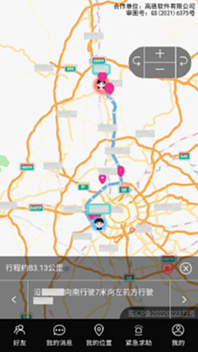 本产品是一款围绕亲友及情侣间位置信息共享而设计开发的应用,通过本应用可随时了解对方当前位置信息和行程轨迹;支持为对方设置出入提醒,对方出入该区域都会向您发出提示消息;遇到危险时一键发出紧急求助等,守护您关心的ta;所有功能均可免费使用。