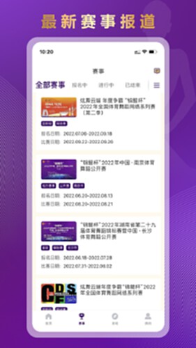 主要版块包括:国际、国内众多舞蹈赛事资讯及跟踪报道,线上/线下舞蹈赛事报名,精彩赛事直播及海量赛事视频荟萃,各地舞蹈协会及机构资讯,圈内大咖在线课堂,优质线上直播课,各地舞蹈考级服务,教师及裁判员培训服务,专业人才求职招聘,线上商城等,旨在满足广大舞蹈从业者及爱好者全方面的需求。