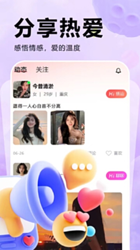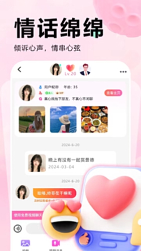 一款集交友、恋爱、社交于一身,解决陌生人社交的交友社交产品。完善的真人认证系统,让交友变得真实可靠。在这里,以文字、语音、视频等多种方式在附近遇见有缘的TA,让心灵相遇,邂逅你的专属甜蜜!