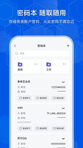 【密码本】忘记密码?不再是问题!隐存提供了密码管理功能,将您的各种密码安全地保存在一个地方,让您随时随地都能够查看;