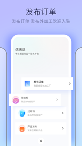 偶来送是专为服装行业提供找订单、找工厂、找辅料、找面料和移动进销存、财务、客户管理工具的智能化云SAAS平台。偶来送基于云计算和大数据技术,相比传统ERP,实现了数据的互联互通,不仅为企业强管控,高效率地优化成本结构,打造成本竞争优势。