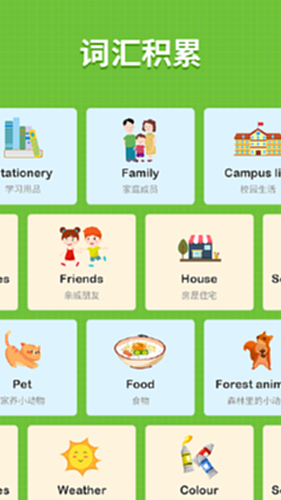 【词汇积累】提供67类实用词汇,分类掌握,内容全面、单词速记,随时随地可练习记忆、复习巩固各类单词。