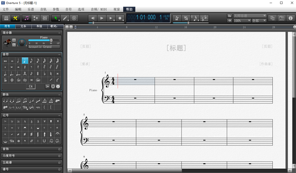 1、独立窗口界面:软件编辑工具和符号调色板触手可及,界面直观清晰,让用户专注于音乐创作而非繁琐的菜单搜索。