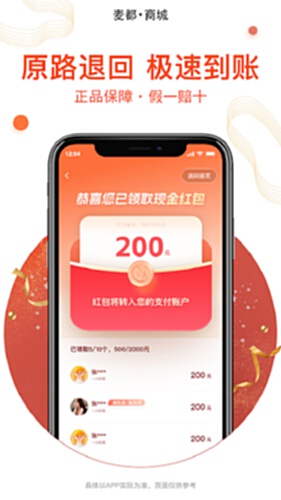 麦都商城所有商品均为麦都自营,类目包含服装、箱包、手机、数码、母婴、运动、户外等。购物后可参与抢红包活动,活动完全公开、透明。