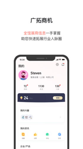 展贸易APP是为中小企业打造的“一站式”、整合型数字社区营销运营平台,集合行业活动资讯,活动组织及管理,便捷备注、商贸配对及意向提交等功能模块,帮助企业与客户建立起更紧密的联系,助力行业人士开发并维护行业人脉网。展贸易,拓展贸易更容易。