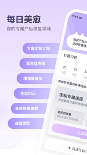 「每日美愈」是一款孕产阶段的运动跟练APP,孕产专家1v1指导、瑜伽健身课程、每日训练计划,助你恢复健康身材。