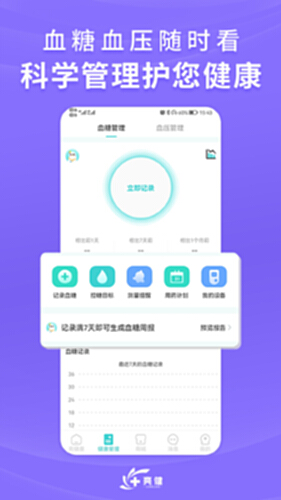 3、健康管理:让用户每天可观看血糖、血压指数,实时了解身体状态,科学管理健康。