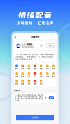 全能配音王电脑版介绍:全能配音王是一款智能配音软件,拥有100多个真人语音模拟发音人,可模拟多种情绪,支持多语种多方言。它简单高效地将文字转换为语音,支持WAV、MP3、MP4等多种格式在线下载。适用于短视频制作、广告配音、商品播报、课件配音、小说朗读等多种场景。