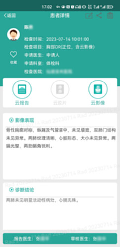 微影医生APP软件,连接对应云服务器,方便医生根据影像和报告进行诊断,同时,医生可以把病人检查信息以短信方式分享给指定医生查看,可以随时随地进行诊断或会诊。
