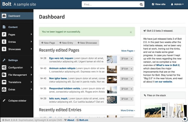 2、双重友好:Bolt CMS兼顾内容编辑者与开发者的使用习惯,既提供直观的操作界面,又给予开发者充分的定制自由。