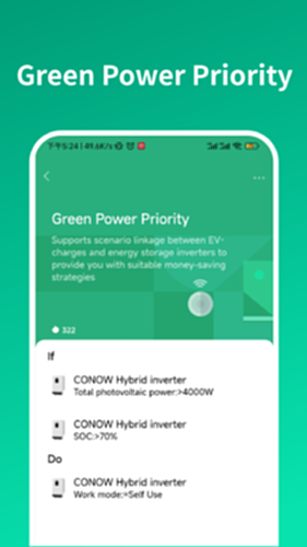 CONOW 业主版电脑版介绍:CONOW 业主版APP 为用户提供全面的能源管理解决方案。通过五个功能模块,“首页”,“数据”“节能”,“场景”,“我的”,用户可以实时查看能流图、发电量、用电量、充电量和放电量等关键指标。此外,APP还支持远程参数设置和调控能源模式,以及智能场景自动化调控功能,帮助用户更有效地管理和利用能源。