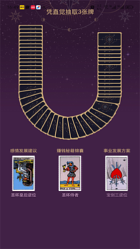 紫薇星座塔罗牌电脑版介绍:这款紫薇星座塔罗牌APP电脑版为用户提供爱情、财富、事业三方面的塔罗牌占卜体验。用户依次抽取三张塔罗牌,每张牌对应一个主题,通过约3分钟的详细讲解,分别解读该主题的现状与未来展望,旨在为用户带来轻松愉悦的人生指引与乐趣。