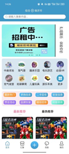 游乐汇聚是一款以游乐设备、二手游乐设备、新产品展示、游乐资讯、展会活动、场地招商、品牌加盟、游乐行业为主的信息发布平台,平台包含亲子乐园、儿童乐园、儿童玩具、文旅景观、室内外游乐场等相关物品购买、出售等信息。