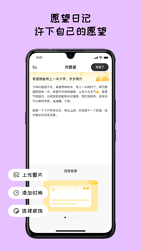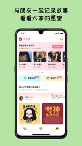 「许愿望」是一款记录美好生活期望,收藏每个小小愿望的盒子。亲人祝福、朋友同学关系、闺蜜愿望、伴侣生活、哥们故事、学业考试、又或者考研上岸等,愿望无论大小,「许愿望」将陪伴你不断实现愿望,逐步遇见更好的自己。