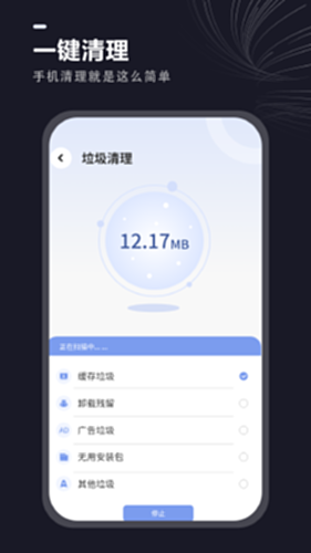 这是一款手机清理软件,手机一键加速,清理没用的安装包,快速清理垃圾,运行更流畅,再也不怕手机卡顿啦~