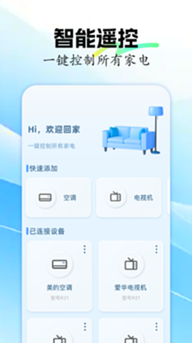 万能手机遥控精灵电脑版介绍:这款万能手机遥控精灵APP电脑版集成了多种设备控制功能,包括电源开关、音量调节和模式切换等,界面简洁明了,操作简单易上手。它能适配客厅、书房等多种场景下的智能设备,如电视、空调、台灯等,为用户提供一站式远程控制体验,轻松管理家中设备,享受便捷智能生活。