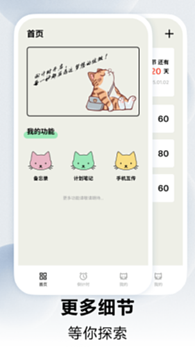 倒计时开启,每一秒都是在靠近梦想的绽放,包含了备忘录,计划笔记,手机互传等等功能的app
