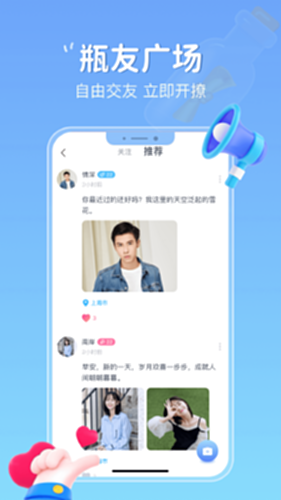 【漂流瓶】捞取自己喜欢的瓶子,即可开聊。
