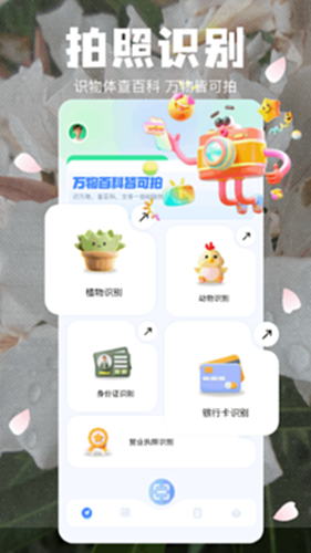 1.拍照识物:拍照或者相册选择照片,即可自动识别