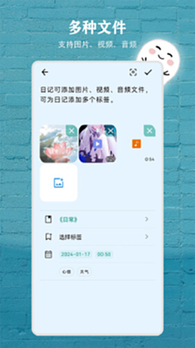 可以使用文字、图片、视频、音频等多种形式记录您的点滴生活,使用你喜欢的形式描绘你的点点滴滴吧。