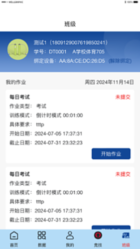 支持学生(用户)无需手机也能随时随地用指定设备完成跳绳作业、比赛及实时训练等任务。在家可以完成课后跳绳作业,在学校可以完成课堂实时跳绳训练。