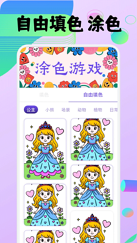 软件提供多样化的创作模式,满足不同需求。在色区填色中,你可以尽情选择喜欢的图片进行涂色填色,从可爱的卡通形象、萌趣动物到美丽的风景画,应有尽有;多种色彩选择,让你的作品更加绚丽多彩。自由涂色模式让你随心所欲选择笔刷、颜色和背景,既能临摹平台提供的素材,也能创作全新作品,无论简单线条画还是复杂场景图,都能找到属于你的色彩。专属画画板则配备了多种画笔和绘画工具,支持自由涂鸦绘画,无论是简单线条勾勒还是复杂场景构建,都能轻松完成,让创意随心绽放。