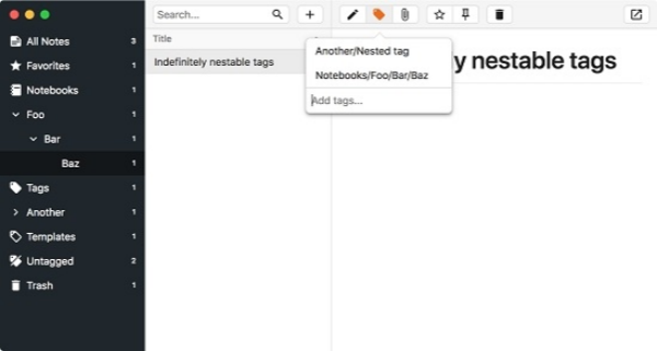 3、无限可嵌套标签:软件摒弃复杂的笔记本与标签分类,采用极简的无限层级嵌套标签(如 foo/bar),让知识管理更灵活。