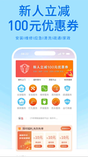 同城上门、水电家电安装维修、厨电卫浴灯具家具智能锁晾衣架安装、家电清洗空调维修加氟、管道疏通、防水堵漏打孔、家政保洁。
