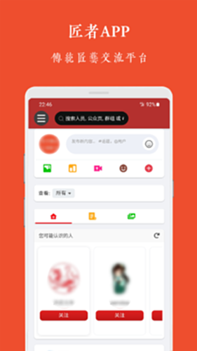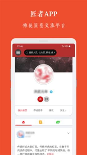 匠者APP,千工百匠,中华传统匠艺传承交流社交平台,致力于挖掘和传承中国传统匠艺文化。包含传统建筑、园林、手工艺、非遗作品、各类技艺等方面的交流。您可以在这里找到和匠人的亲密互动以及从其中学习到的珍贵技能。让更多的人了解和体验中国传统匠艺的魅力,与世界分享中国传统匠艺文化。