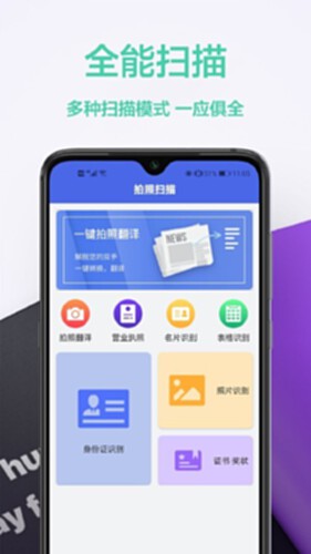 扫描翻译,支持多种语言的全文互译,无需打开翻译app,直接调用扫描识别。