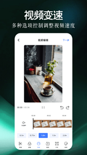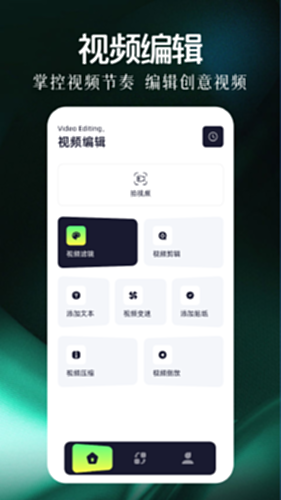 视频编辑:支持剪辑、变速、倒放,还能添加文本与贴纸,并有多种滤镜及丰富模板,轻松打造创意视频。