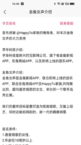 如果你喜欢唱歌,可以报名参加我们金鱼女声的节目