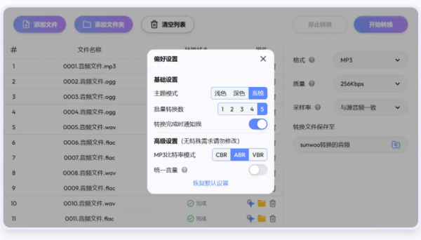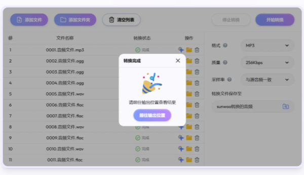 4、处理高效快捷:Sunwoo音频格式转换器具备高效的转换引擎与批量处理能力,大幅缩短等待时间,显著提升工作效率。