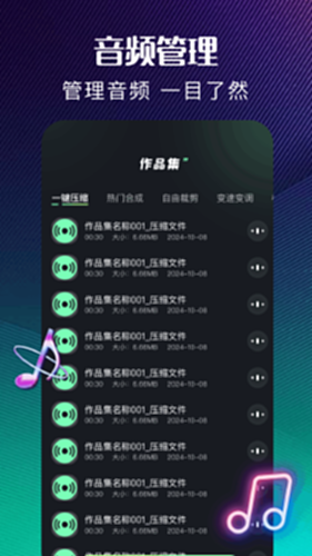 1、音频压缩:轻松一键可将音频音乐进行压缩,便捷传输与减轻存储空间;