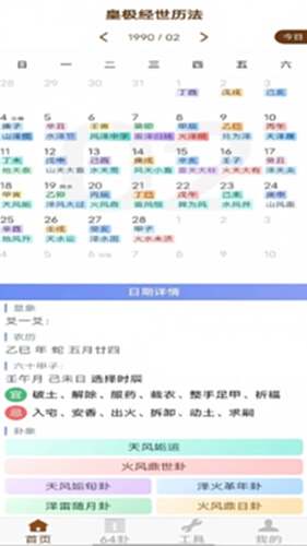 皇极经世历法是一款集传统历法与卦象推演于一体的专业工具,以邵雍的《皇极经世》为内核,完美结合农历、节气、六十甲子、六十四卦,为用户提供精准的卦象信息。卦象覆盖了1990年2月4日至2106年2月3日的116年,从当下可以看过去35年,看未来80年,每一天都精确给出了对应的运卦、世卦、旬卦、年卦、月卦、日卦。