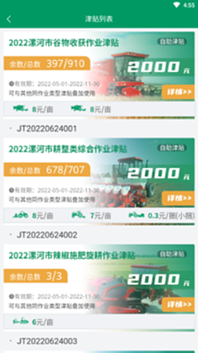 农机云平台集任务中心,津贴中心,农机管理,作业记录等功能模块,给机手、农户提供合作平台,方便机主领取作业补贴,打破信息孤岛,让使用者更便利的享受到惠民政策。