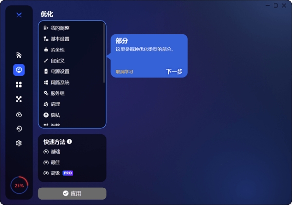 2、选模式:接下来选你要用的优化模式,要是你懂电脑就直接选专家模式进去慢慢调。