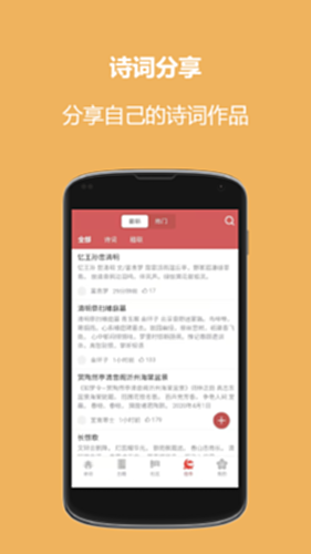 5、诗词社区:诗友在这里可以分享自己的作诗技巧和心得体会,和其他诗友一起学习进步