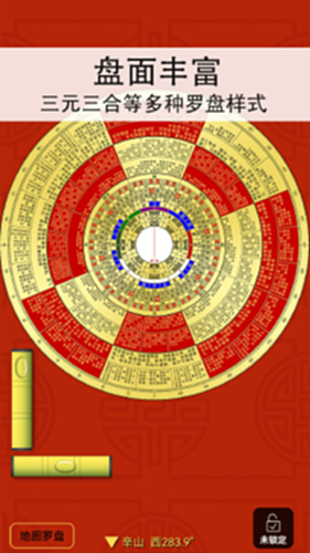 - 应用内有三元盘、三合盘、综合盘、玄空飞星、金锁玉关等多种传统罗盘样式