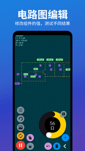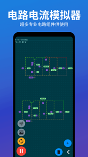 电路电压电流模拟器是一个实时的电路电压电流模拟器,您可以设置具有各种电子元件的电路板,绘制电工图或者电路图并且模拟电路的运行。