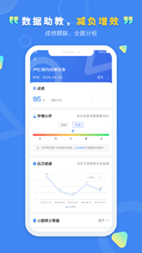 文通云精准提分服务体系,依托自研全自主知识产权提分系统,迭加数据助教服务,基于大数据采集和分析技术,采集学生日常学习、作业、考试等测评数据,分析诊断知识点与掌握程度,全学科全时段地掌控学情与趋势,对原有的知识短板进行巩固和加强训练,攻克薄弱知识点,查缺补漏,强化练习,精准提升学业。