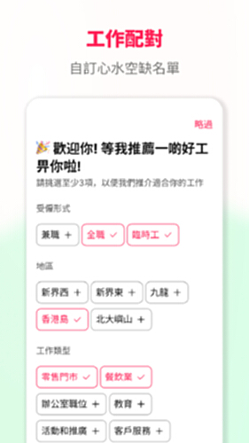 4. 自订求职偏好,以聘用模式、行业工种偏好、地点及时间进行系统配对,为你 度身订造的最新职位推介。