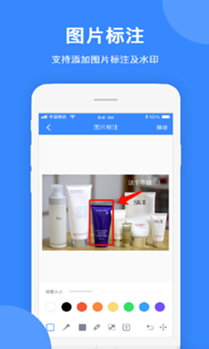 支持剪裁、滤镜、涂鸦、旋转、文字、贴纸等;