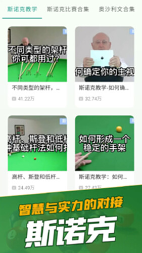 很多喜欢九球/斯诺克的朋友却不知道它具体的玩法和规则是什么,那么这款软件它就提供了丰富的教学视频,在这里无论您是想入门九球/斯诺克还是想学习一些打球的技巧它都可以满足您的需求,让您快速的成为一名九球/斯诺克高手,在这里有关于台球姿势的指导、训练须知和各种打球技巧和理论知识和训练实例指导。