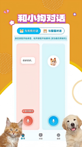 宠物翻译宝电脑版介绍:“宠物翻译宝”是一款帮助主人与宠物实现双向沟通的APP。它通过采集大量猫狗叫声样本,能够识别宠物的叫声并解读其可能意图,同时也可将主人的语音转化为模拟的猫狗叫声进行互动。此外,APP提供宠物音板便于交流,并能生成对话记录,帮助主人回顾与宠物的温馨互动,成为理解爱宠情绪、拉近彼此关系的贴心工具。