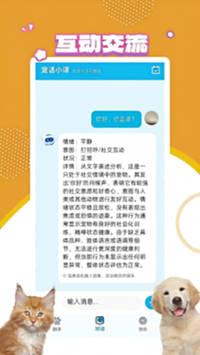 诚邀您即刻下载“宠物翻译宝”,实现与爱宠的互动交流。 让每一次亲昵的呼唤都能被温柔“听见”,让每一声可爱的回应都能被用心“解读”。无论您是想知晓狗狗摇尾低呜时的小心思,还是想弄明白猫咪蹭腿咕噜声里的小情绪,“宠物翻译宝”都能成为您与爱宠之间贴心的沟通桥梁。